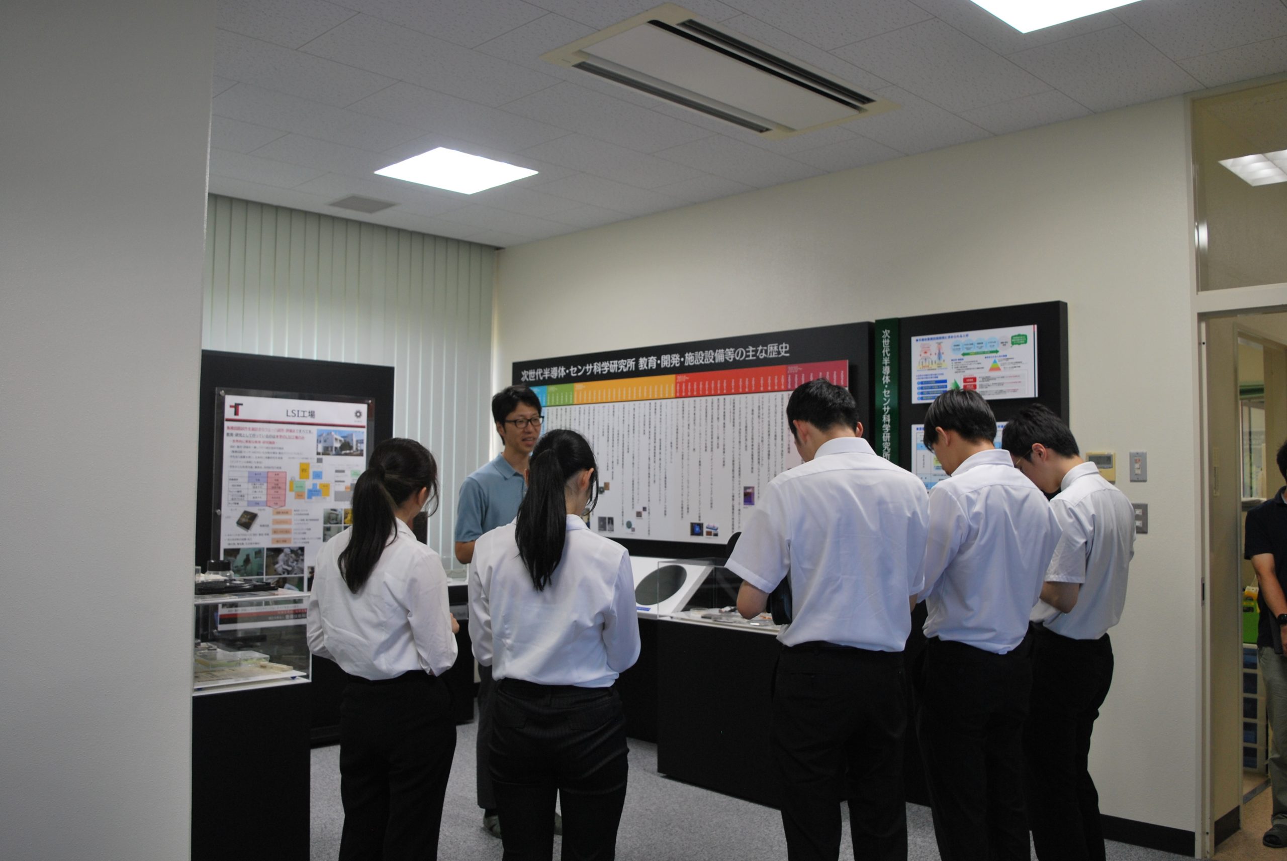 本研究所には22名の学生が訪れ、LSI工場の半導体集積回路施設・設備を本研究所 野田 俊彦 准教授および電気・電子情報工学系 山根 啓輔 教授が案内いたしました。