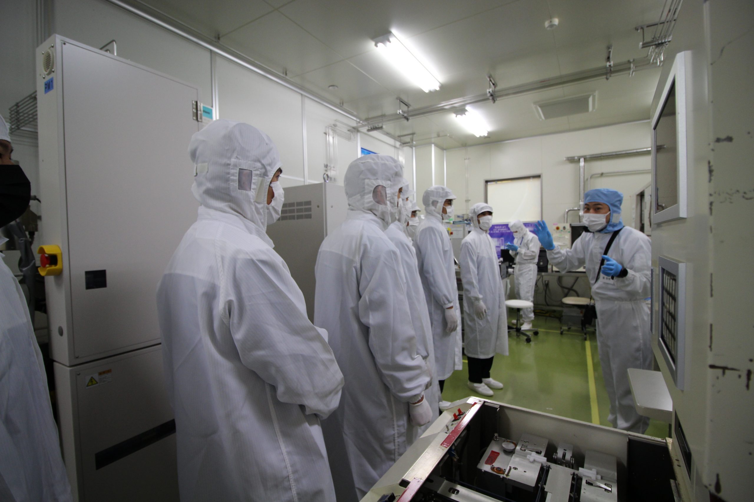 本研究所には20名の学生が訪れ、LSI工場の半導体集積回路施設・設備を電気・電子情報工学系 石川靖彦教授および崔 容俊 准教授が案内いたしました。