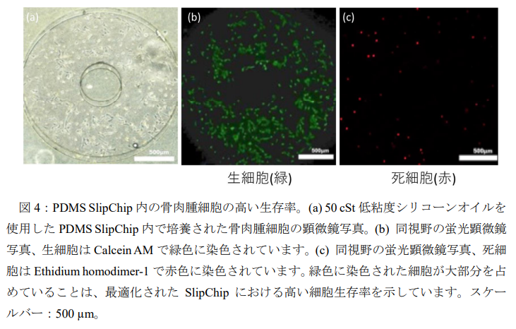 革新センシング技術創成分野 永井萌土教授、機械工学専攻 博士後期課程 Rafia Inaam 氏らは、アルゼンチンのトランスレーショナル医学・生体医工学研究所(IMTIB)およびインド工科大学マドラス校と共同で、多機能マイクロ流体デバイス「PDMS SlipChip」の操作性と信頼性を向上しました。低粘度シリコーンオイルを使用し、PDMS の製造プロセスを調整し、SlipChip が細胞を用いた実験に対してより信頼性を高め、