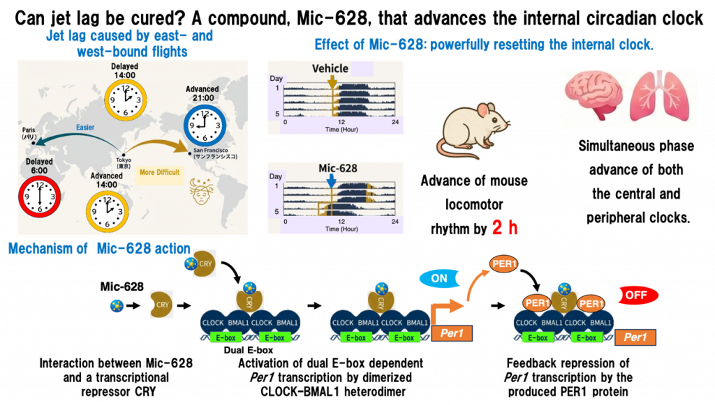 The researchers plan to investigate the safety and efficacy of Mic-628 in further animal and human studies. Because it reproducibly advances the body clock through a well-defined molecular mechanism, Mic-628 may serve as a prototype “smart drug” for managing jet lag, shift work-related sleep problems, and other circadian misalignment disorders.